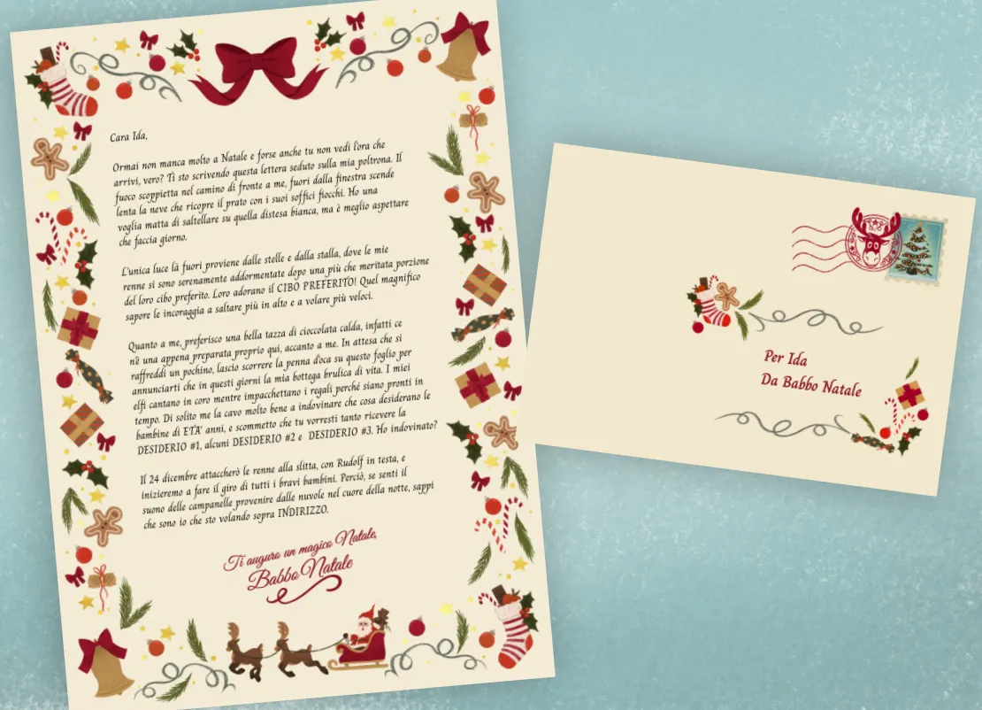 Lettera di Babbo Natale - Lettere di Babbo Natale | Elfi Ordina una lettera o un videomessaggio a Babbo Natale. Babbo Natale in persona scriverà o invierà un video al tuo bambino. La prima ed originale lettera da Babbo Natale. Lettera da Babbo Natale, video da Babbo Natale, lettera di babbo natale
