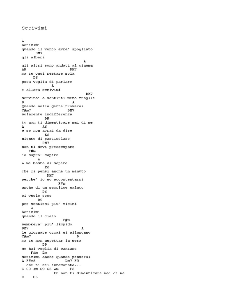 Lettera benji e fede accordi. Niente Di Speciale/Benji e Fede Chords - ChordU [B Ebm Bm E Abm] Chords for Niente Di Speciale/Benji e Fede with Key, BPM, and easy-to-follow letter notes in sheet. Play with guitar, piano, ukulele, or any instrument you choose. Benji & Fede - Lettera Lyrics | Genius Lyrics Benji & Fede 1. Tutta d'un fiato 2. Lettera 3. Lunedì 4. Senza te 5. New York 6. Fino a farmi male 7. Tempo di cambiare 8. Stroboscopica 9. Prendimi per mano Credits Produced By Marco Barusso... Benji & Fede Chords & Tabs : 22 Total @ Ultimate-Guitar.Com Learn how to play 19 songs by Benji & Fede easily. At Ultimate-Guitar.com you will find 21 chords & tabs made by our community and UG professionals. Use short videos (shots), guitar pro versions ... Benji & Fede - Ogni Volta (Chords) - Ultimate Guitar OGNI VOLTA. (Benji & Fede) Fmaj7sus2 xx3010 G/B x20033 [Intro] | C | Am | Em | Fmaj7sus2 G | [Verse] C Ogni volta che non c'è un taxi Am Proprio quando devo andare Dm Ogni volta che non trovo pace Fmaj7sus2 G E qualcuno dice mi dispiace C Am Ogni volta che mi prendo male, lascia stare Dm Come quando ci riprovo e non succede niente Fmaj7sus2 G ...