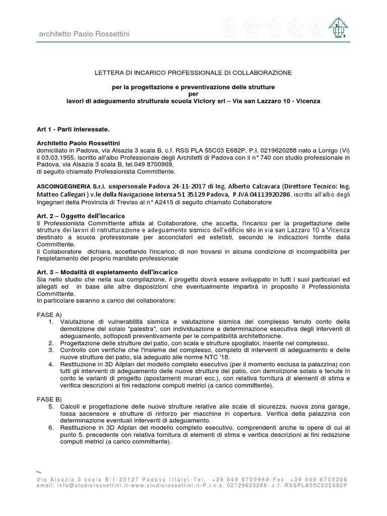 Fac Simile Incarico Per Servizi Di Ingegneria E Architettura Per ... Con la presente scrittura privata da valere ad ogni effetto di legge, si conviene e si stipula quanto il seguente: Disciplinare di Incarico Professionale regolamentato dai seguenti articoli, accettato e sottoscritto dal Committente e dal Professionista. Art.1 - Oggetto dell'incarico e descrizione dettagliata della prestazione: Lettera di incarico professionale: modello esempio fac simile Lettera di incarico professionale modello fac simile è stata pubblicata sul sito ufficiale del C.N.D.C.E.C. Consiglio Nazionale dei Dottori Commercialisti e degli Esperti Contabili e e su quello del Collegio Nazionale dei Geometri e Geometri Laureati, in osservazione a quanto previsto dalle modifiche apportate alla disciplina sulle professioni … Lettera di incarico professionale: struttura e fac simile da scaricare Fac simile lettera di incarico professionale: Scarica modello gratis La produzione di un documento formale è sempre un atto che richiede la massima precisione. Di seguito riportiamo due esempi, molto differenti tra loro, di lettere di incarico professionale. Modello 1 Modello 2