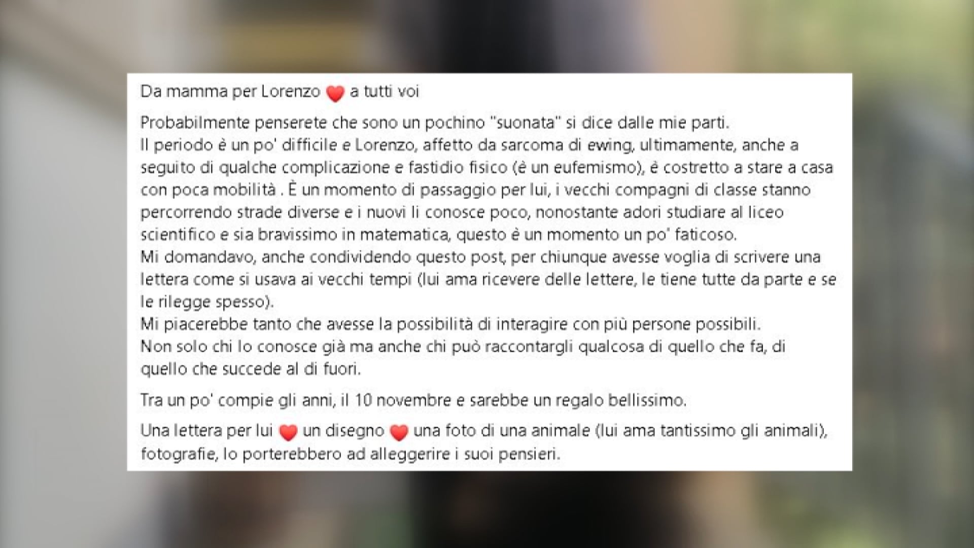 L'appello di una mamma "Scrivete a mio figlio malato, aiutatemi a distrarlo". E il web risponde con lettere e fotografie