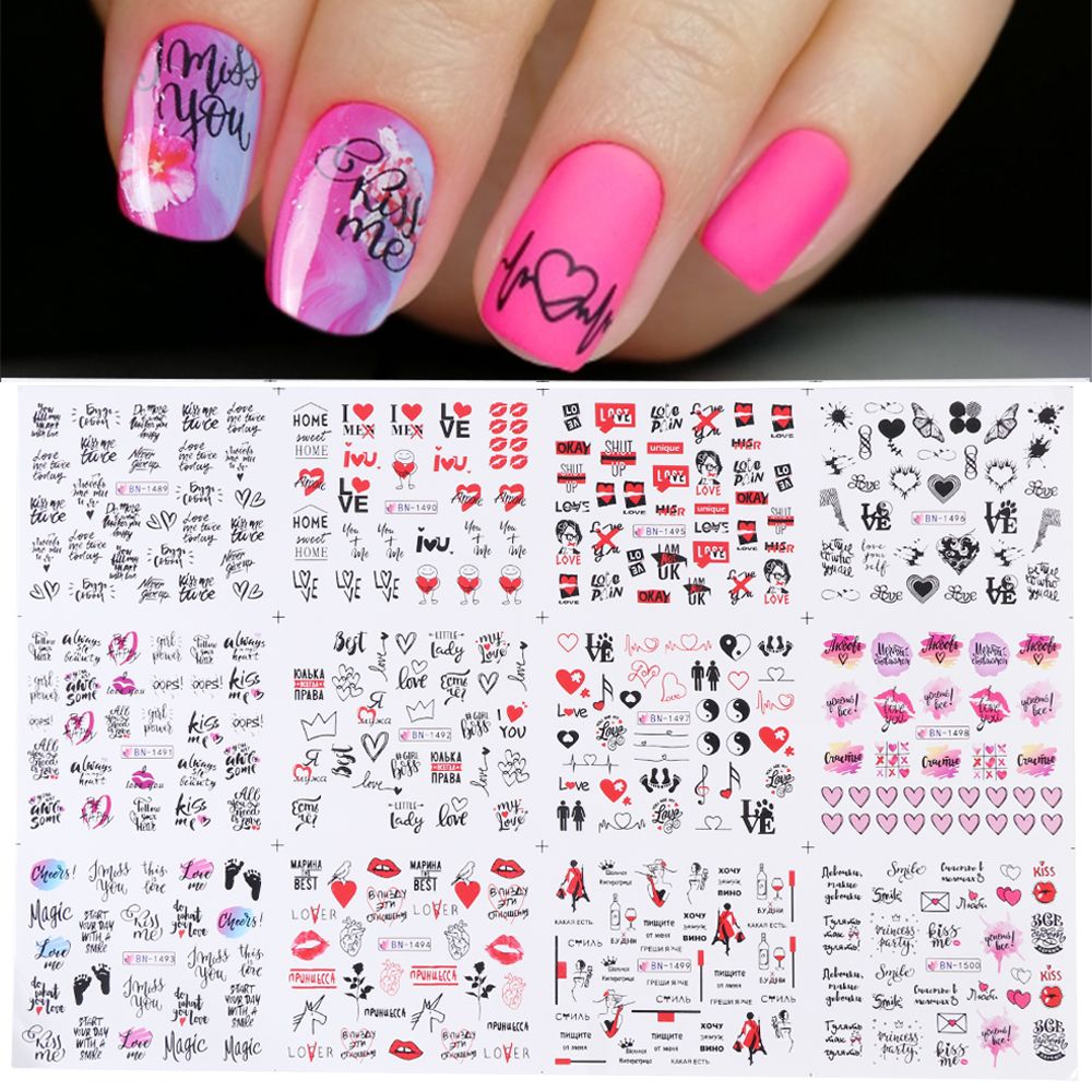 Nail Sticker Slidirs Love Heart Letters Design Nail Art Acqua ...